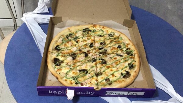 Рис, нори, цыпленок (копченый), сливочный сыр, омлет тамаго, соусы спайси, моцарелла и барбекю, кунжут (8 шт; 265 гр.)