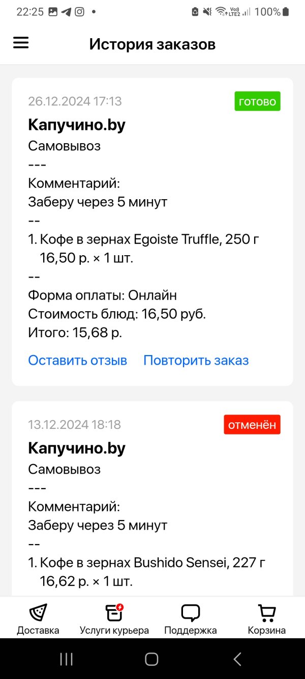 Время доставки: Быстро заказ был готов к выдаче