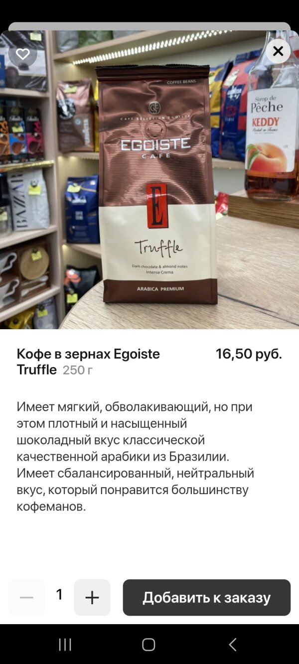 В этом торговом обьекте всегда нравится и ассортимент и обслуживание и качественные товары.Кофе продают только высококачественное.