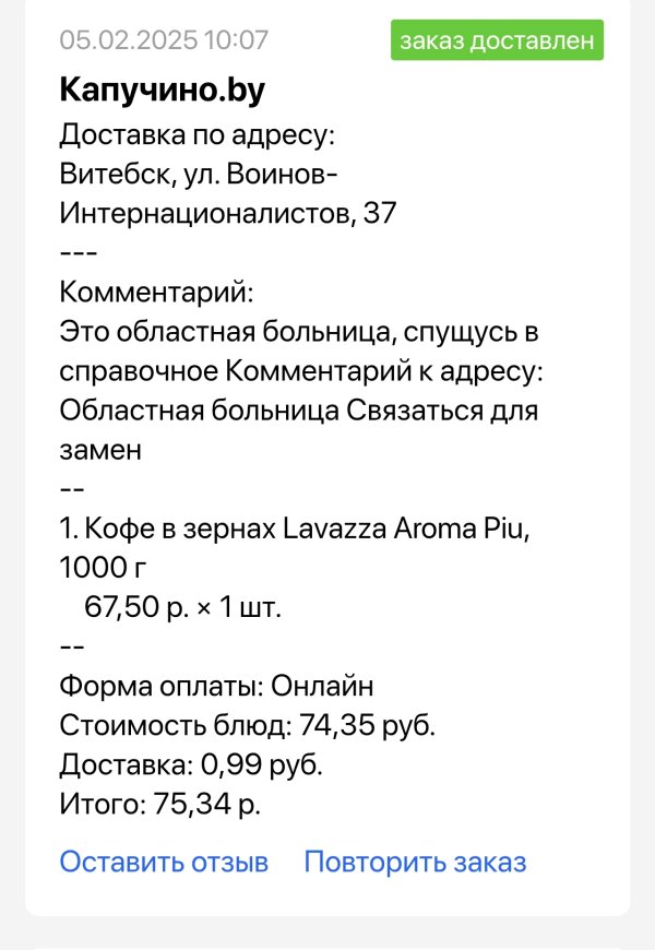 Приятно покупки делать через clever.by.Это кофе нахожу в Витебске только в Kapuchino.by и даже жаль,что оно у них в малых количествах бывает.Он премиальный и рекомендую ценителям качественного кофе