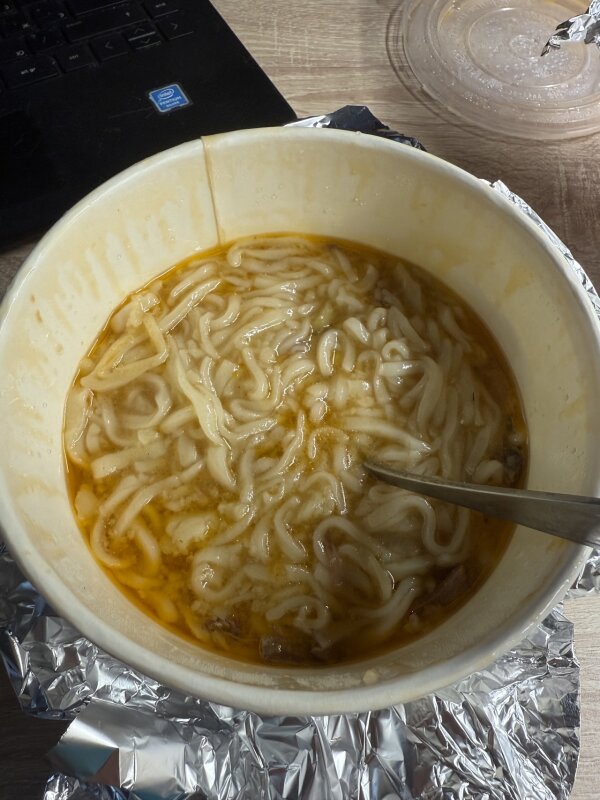 Лапша с бульоном и говядиной. Говядины там тупо нет. Если это бульон, то он как минимум должен быть жидкий, это какой-то соус.