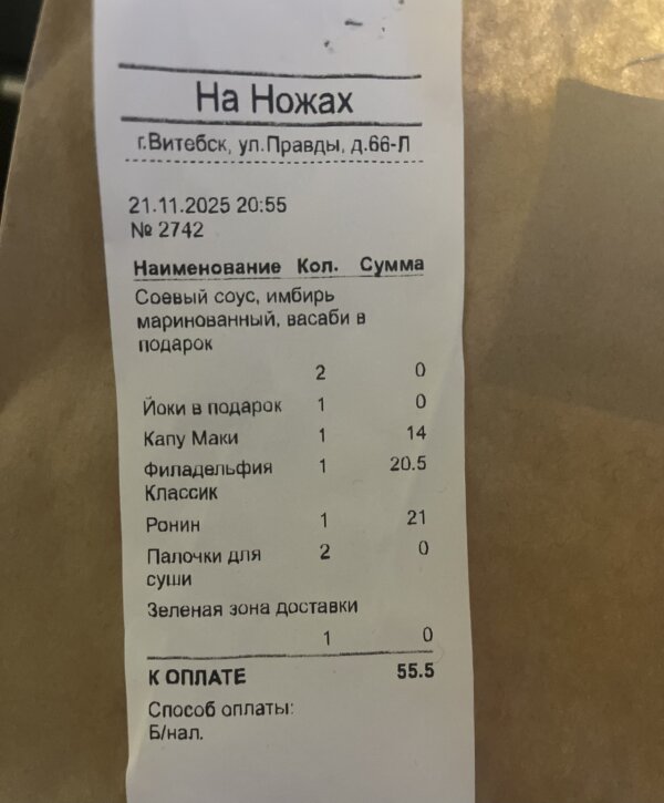 Регулярно заказываем суши 🍣 На ножах, все всегда было вкусно и без проблем с доставкой или сервисом, все нравится