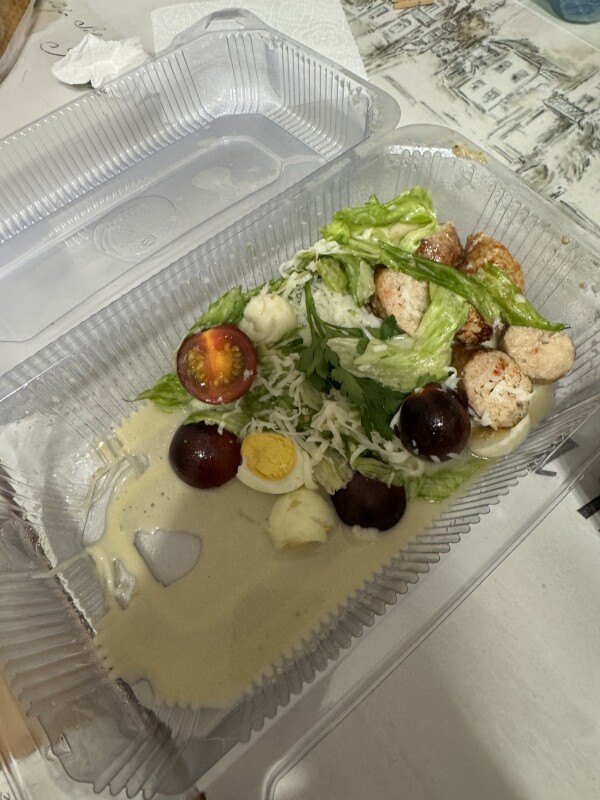 Данный заказ был проверен на качество нашим шеф поваром, плюс мы так же проверили наши камеры видеонаблюдения и уверены, что заказ был отдан полностью готовым.
