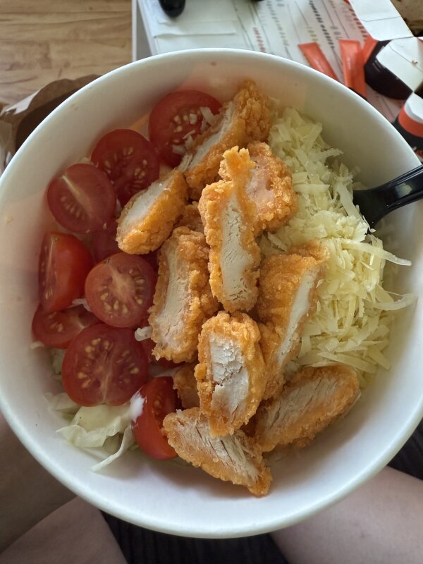 В салате чувствуется только капуста(отсутствие начос-косяк), в том яме и воке мало начинки и вкуса.