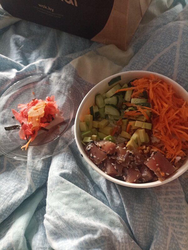 Супы в целом вкусные, но ощущение, будто просто ролтон заварил и добавил в него всякого вкусного. Поке с тунцом есть не стали... Тунец ужасно воняет будто стух, авокадо горькое... Из комплектации была только одна вилка (заказ на двоих) ни одной салфетки. Курочка в целом вкусная и рис неплохой... Но в целом остались недовольны... Особенно изза вонючего тунца...