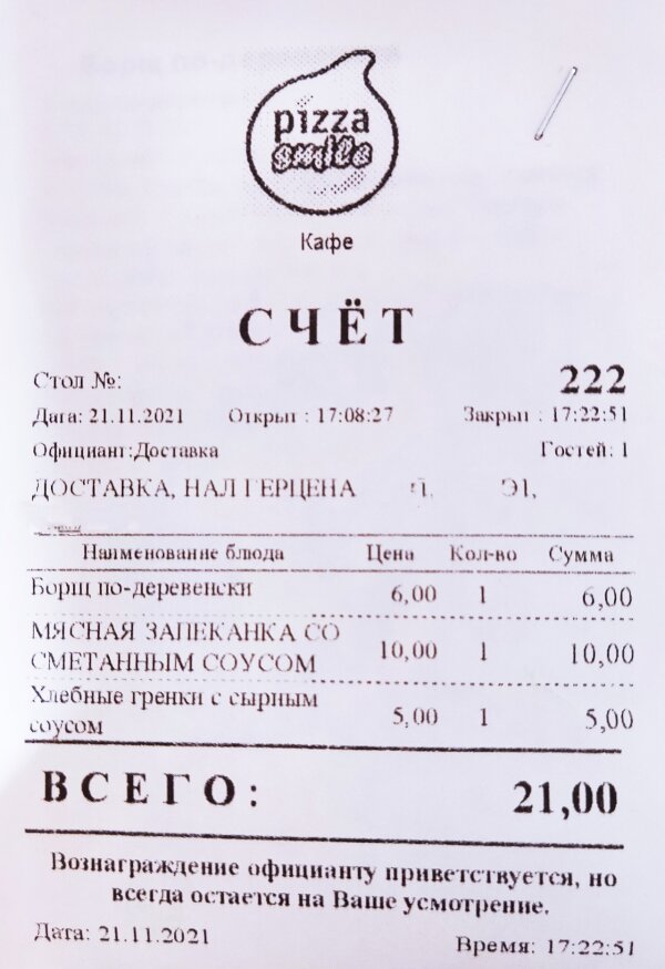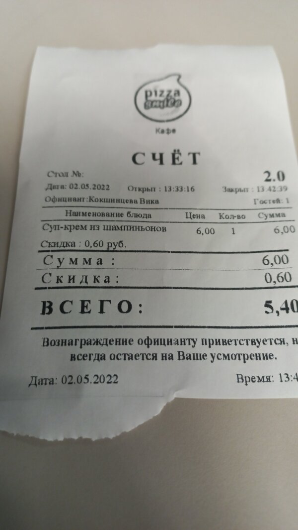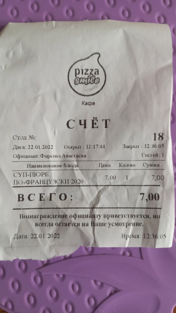 Пиццерия "Pizza smile", которая размещена в торговом центре "ТРИО" часто заполнена посетителями, что говорит о доступных ценах на блюда и хорошее меню. Появился в меню новый суп по-французски. Это сырный супчик с гренками. Мне понравился. Не солёный, в меру всё в нём. Понравилось на этот раз и обслуживание официантом Анастасией. Люблю я таких "живеньких" энергичных людей в сфере общепита. Не надо ждать и ходить узнавать, когда будет блюдо готово. Она приняла заказ, принесла на стол приборы и через пару минут подошла и сказала, что мой супчик будет скоро. На кассе администратор начислила кэшбэк от витебск.биз за заказ.