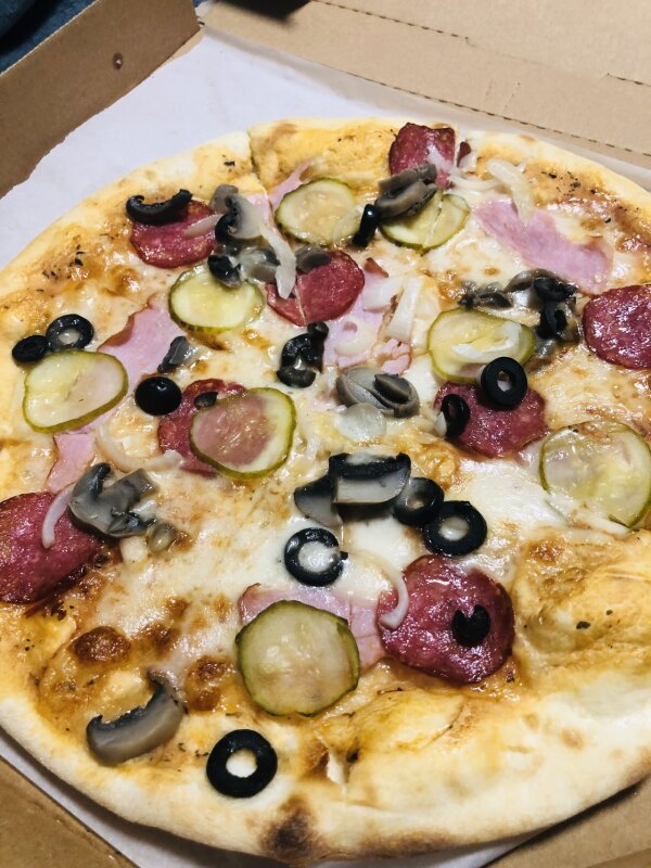 Пиццу привезли очень горячую, будто бы только из печи. Давно такого не наблюдал в доставках. Отлично!