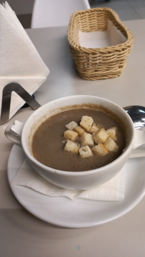В последнее время крем-супы в этом кафе стали очень жидкие и порции как-то маленькие. Обслуживание быстрое и это радует. Официанты стараются быстро подойти ко всем гостям и обслужить. Не всегда на месте администратор, а только она делает начисление или списание баллов витебск.биз. Меню хорошее, имеются в нём и те блюда. которые давно готовятся и новинки. Я в основном в этом заведении люблю крем-супы и выбор их в меню состоит из трёх видов, но почти всегда в моё посещение есть только суп с шампиньонов. Видимо остальные в меню только прописаны и их покушать не удаётся. Наверное с шампиньонов готовится быстро и легко и только его и предлагают. А это как-то неправильно. что в меню выбор имеется, а в наличии не имеется(.Может учтут мой отзыв и я наконец смогу есть и другие супы