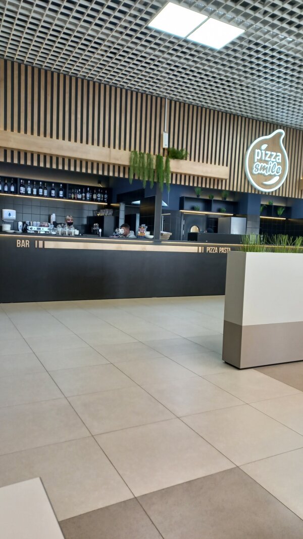 Поскольку в пятницу в семь вечера кафе Арена-гриль и Арена-суши были под завязку забиты народом (ковид нам не страшен! :)) ), то решили сделать пробную вылазку в Пиццу Смайл (очень захотелось пиццы), что на 2 этаже ТЦ Трио.