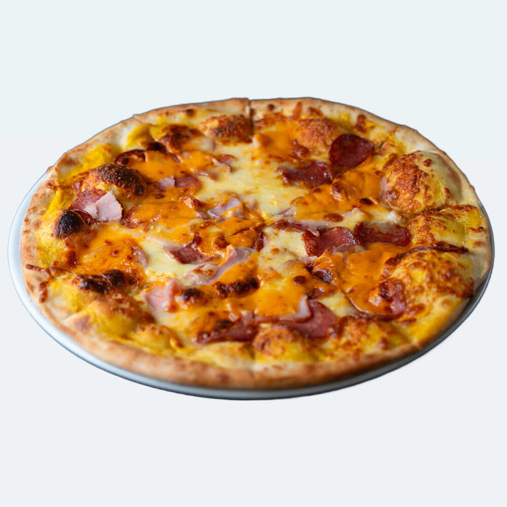 Салями, сыр Чеддер, ветчина, соус Сырный, сыр Моцарелла, специи