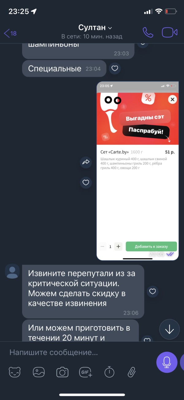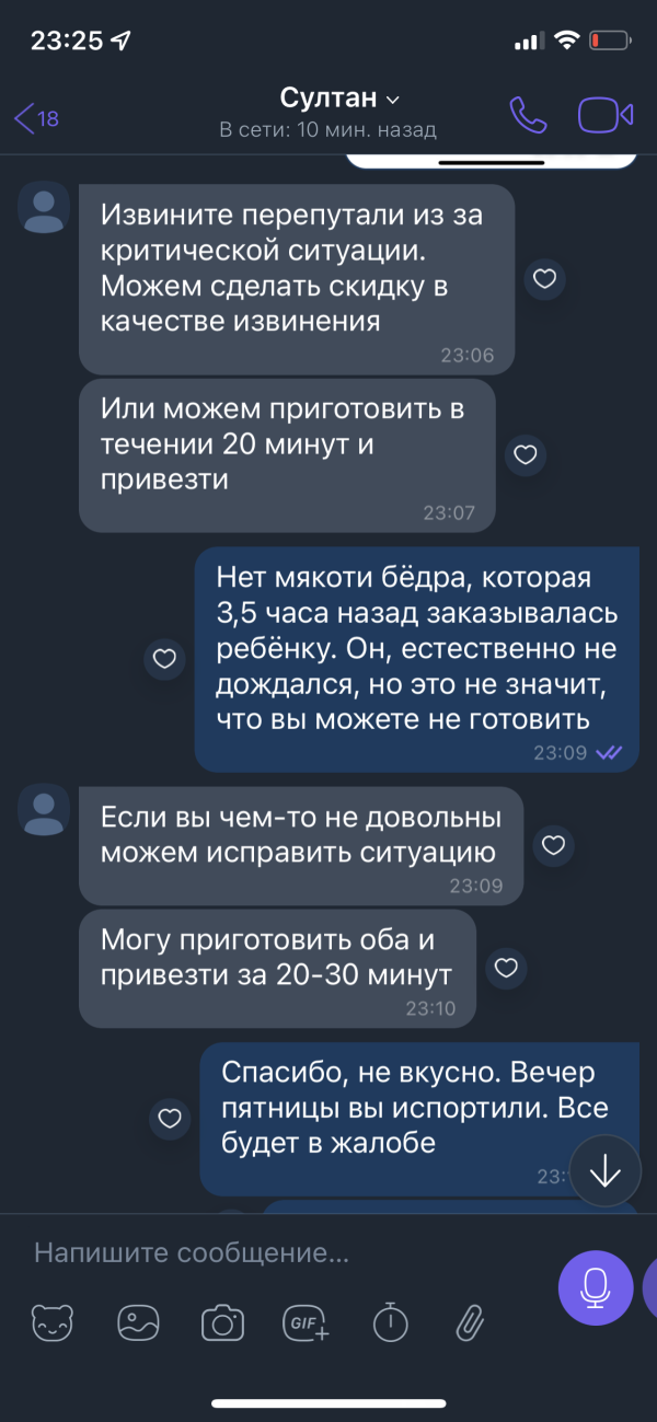 Хорошо, что у нас есть собака. После 3,5 часов ожидания привезли корм для собаки вместо нашего заказа, курица сырая, свинина не жуется