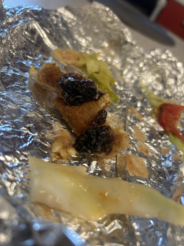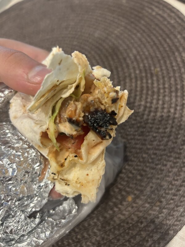 Вид не презентабельный, запах неприятный, соответственно пропадает желание есть, два укуса и шаурма в мусорке