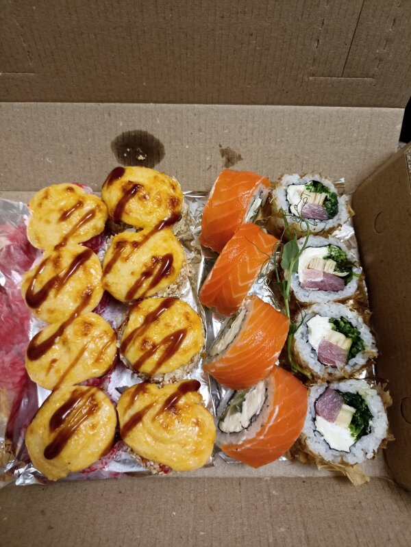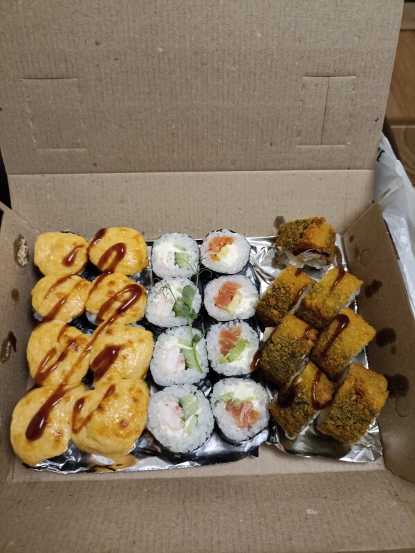 Суши горячие, приготовлен в срок. Приятные девочки отдали заказ.