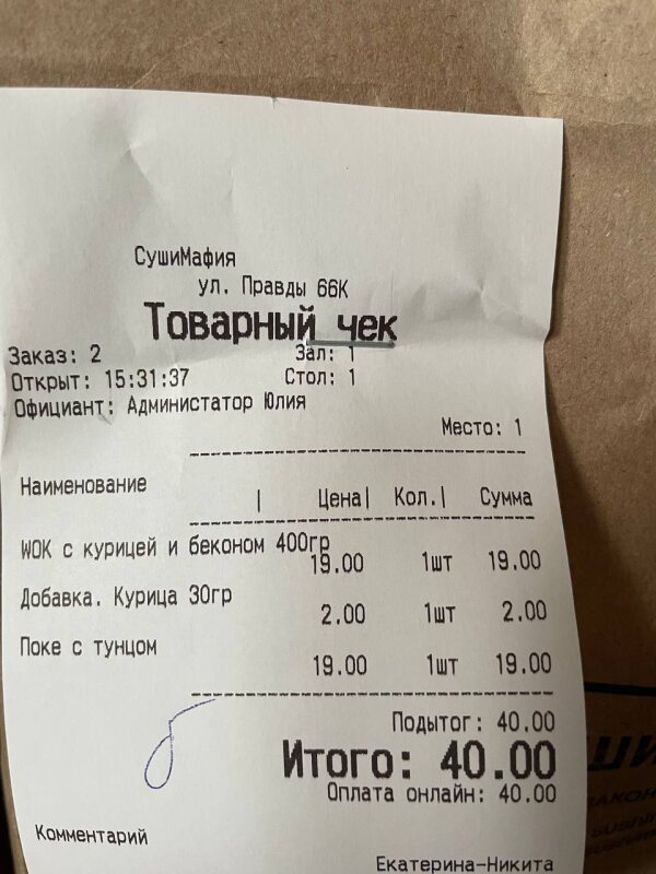 Заказывали поке с тунцом и лапшу с курицей (смотрите чек). Буквально в магазин рядом успела собраться и сходить, как на обратном пути у лифта встретила курьера. Очень быстрая доставка) Были голодные, фото нет, но все соответствует картинке на сайте. Нам понравилось и то и другое, будем заказывать еще) Звезду снимать не вижу смысла, был чуть рис сбитый, сухой и я, оказывается, рыбку вне ролов не очень люблю, но это не от повара зависит:) В прошлый раз был поке с курицей, тоже было очень вкусно само по себе плюс соус унаги, кажется, спасет что угодно.