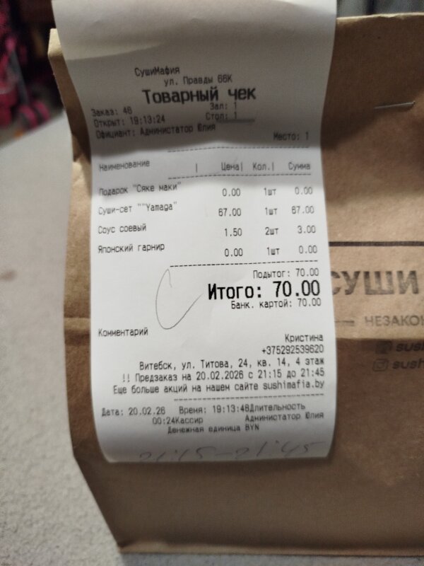 Время доставки: В пределах заявленного заведением времени