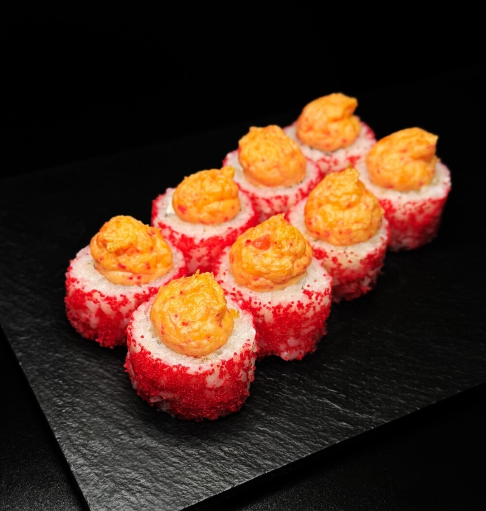 Снежный краб, рис, нори, соус «Спайси», икра «Тобико»