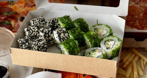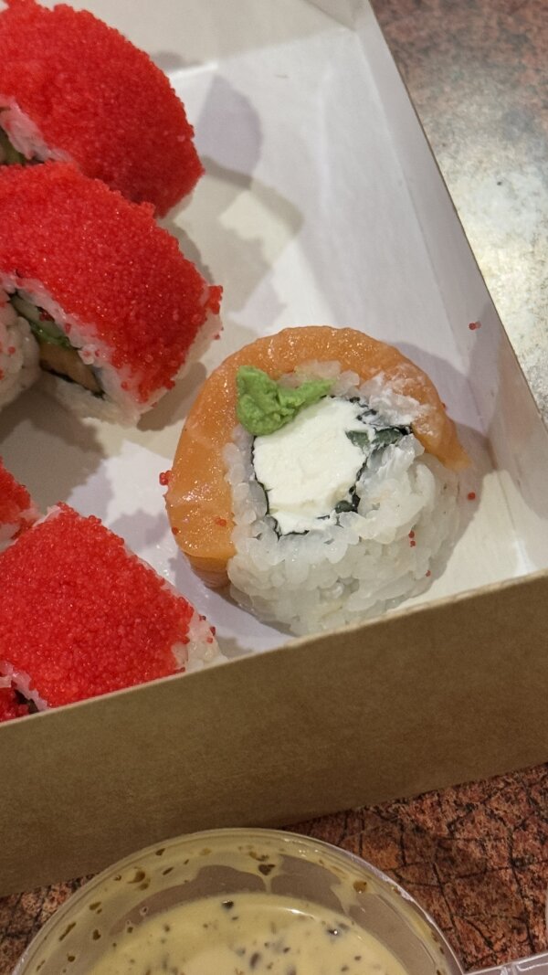 Не привезли васаби, второй раз бы не заказал.вилкой не есть на много вкуснее