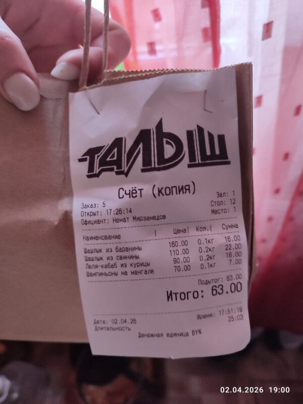 Всё очень понравилось шашлык из свинины,из бараны и кебаб из курицы, шампиньоны отдельно божественны!!!