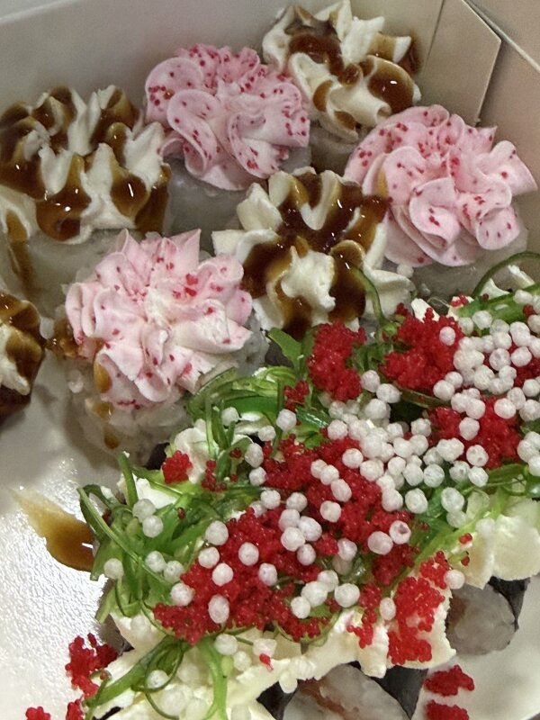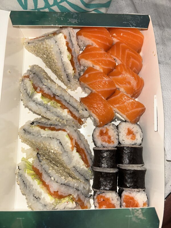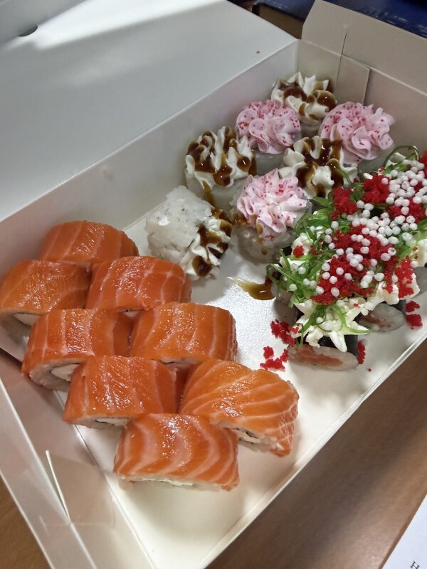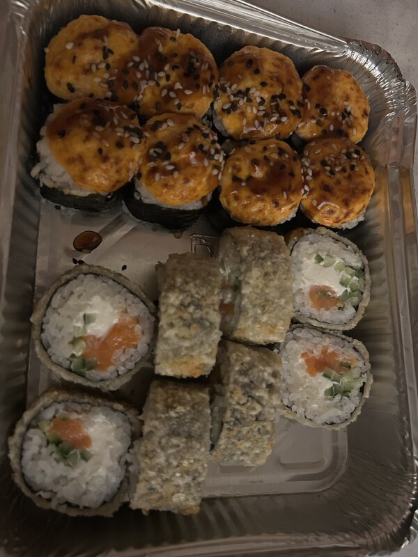 Рис будто не совсем свежий , восторга совсем не произвел этот сет, доставка была за 20минут