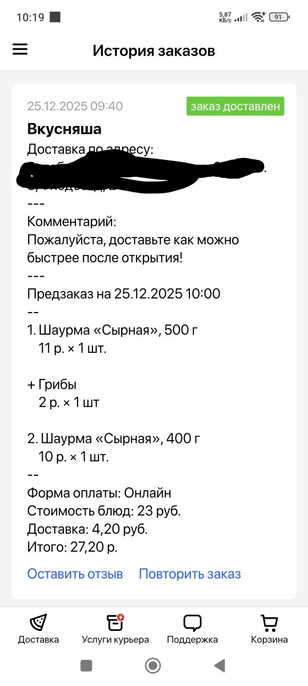 Шаурма вкусная, брал острую-просто огонь. Соусов хватает, овощи прогреть.